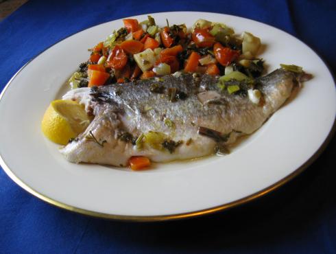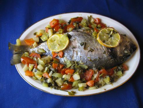 Tento recept je vhodný na přípravu řady druhů hlavně větších ryb, úžasně zde splynou do lahodné chuti zelenina, ryba a olivový olej. Zelenina se pak podává jako příloha.